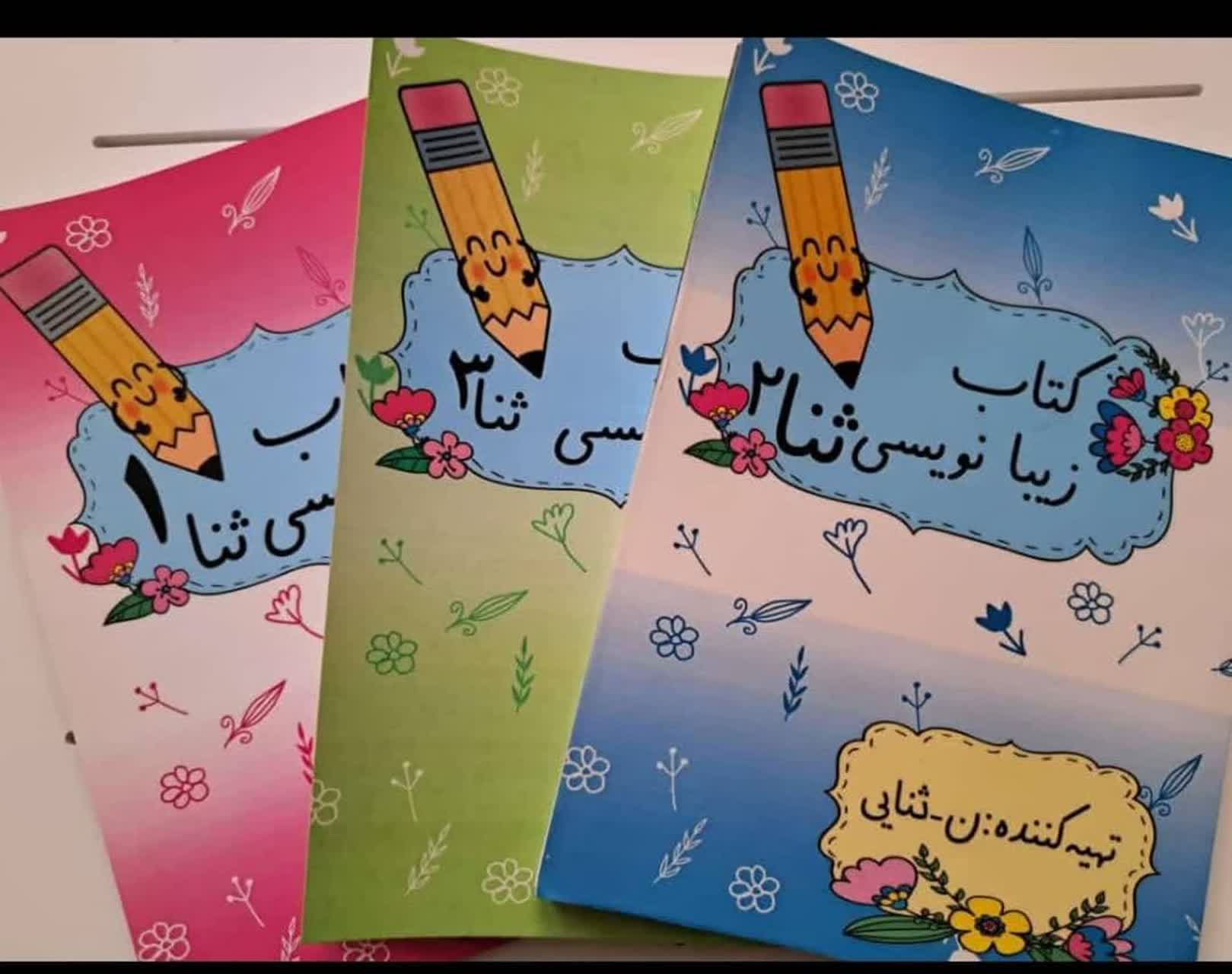 «مجموعه ی کتابهای آموزش و تمرین زیبانویسی ثنا برای پیشدبستانیها و دبستانی های عزیزبه صورت الگوهای مبتنی بر خط نستعلیق تحریری ..."